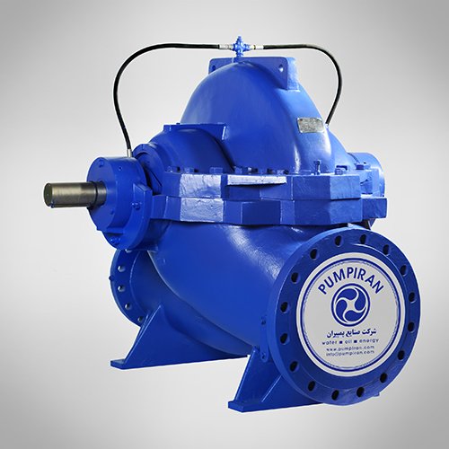 Pump Iran double suction electropumps (DSP) are centrifugal and single-stage pumps with helical housings. The housing of these Pump Iran pumps is axially cut which allows the rotating components to be changed easily. Exchangeable wear rings are embedded on the housing of the pump. Thrust and suction side flanges of the pump are connected to the bottom of the housing and both flanges are in a single central line. The propeller of Pump Iran double suction pump (DSP) is radial, close and with two inlets for the fluid. There is no axial force in these propellers. The propeller is balanced according to the 1940ISO standard in both dynamic and static situations. The shaft of this pump is entirely sealed to prevent pumped fluid leakage. The seals on the shaft are covered with the protection bushings.